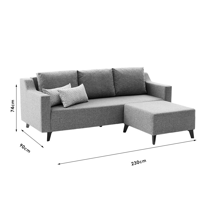 Γωνιακός καναπές-κρεβάτι PWF-0592 pakoworld ύφασμα γκρι 230x90x74εκ