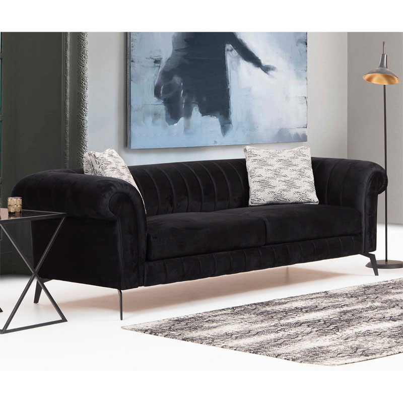 Καναπές PWF-0584 pakoworld 3θέσιος τύπου Chesterfielld ύφασμα μαύρο 245x110x70εκ