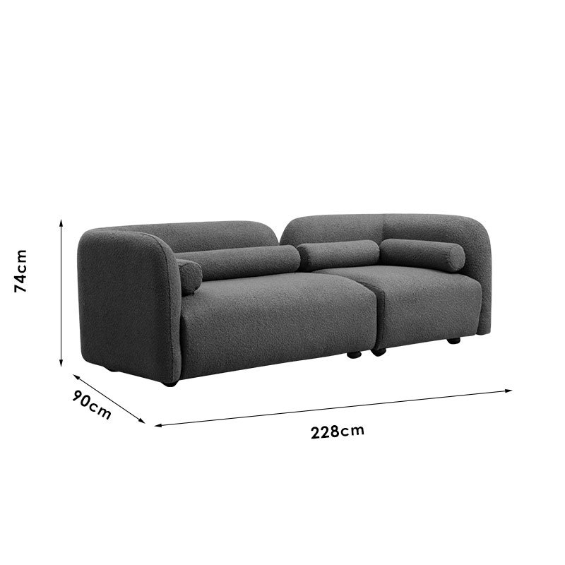 Καναπές 3θέσιος Tranquil pakoworld ύφασμα μπουκλέ γκρι 228x90x74εκ