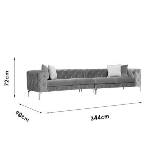 Καναπές 4θέσιος PWF-0579 pakoworld τύπου Chesterfield ύφασμα μπεζ 344x90x72εκ