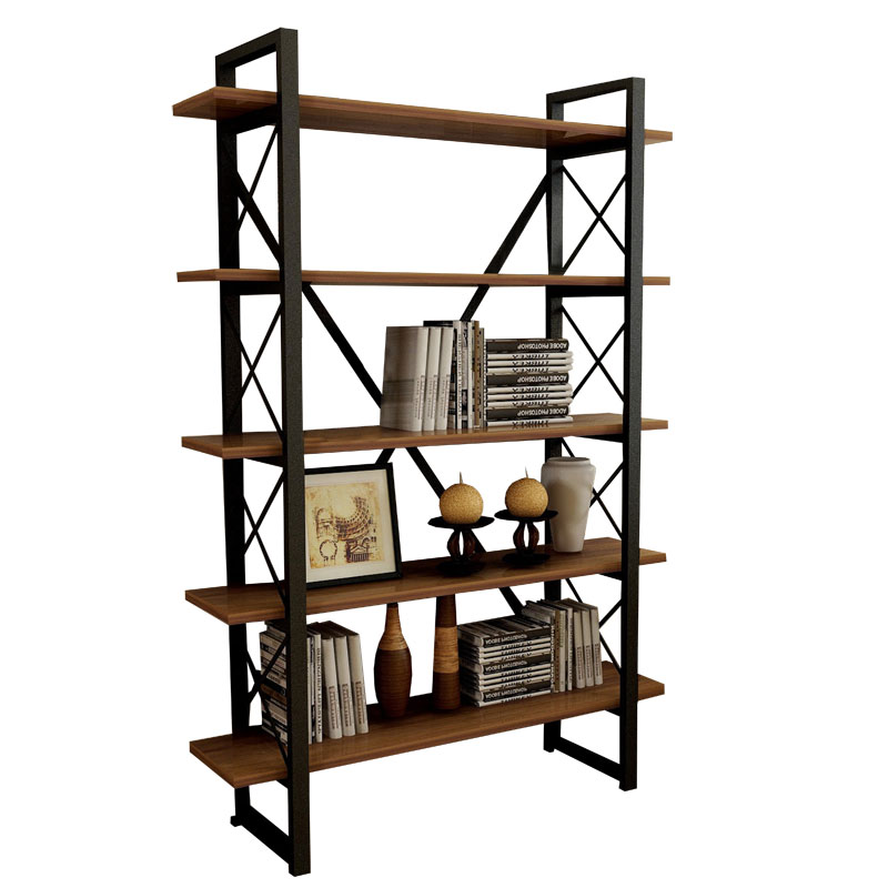 Βιβλιοθήκη Wook pakoworld καρυδί-μαύρο 90x34x180εκ