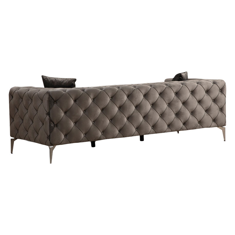 Καναπές 3θέσιος PWF-0579 pakoworld τύπου Chesterfield ύφασμα ανθρακί 237x90x73εκ