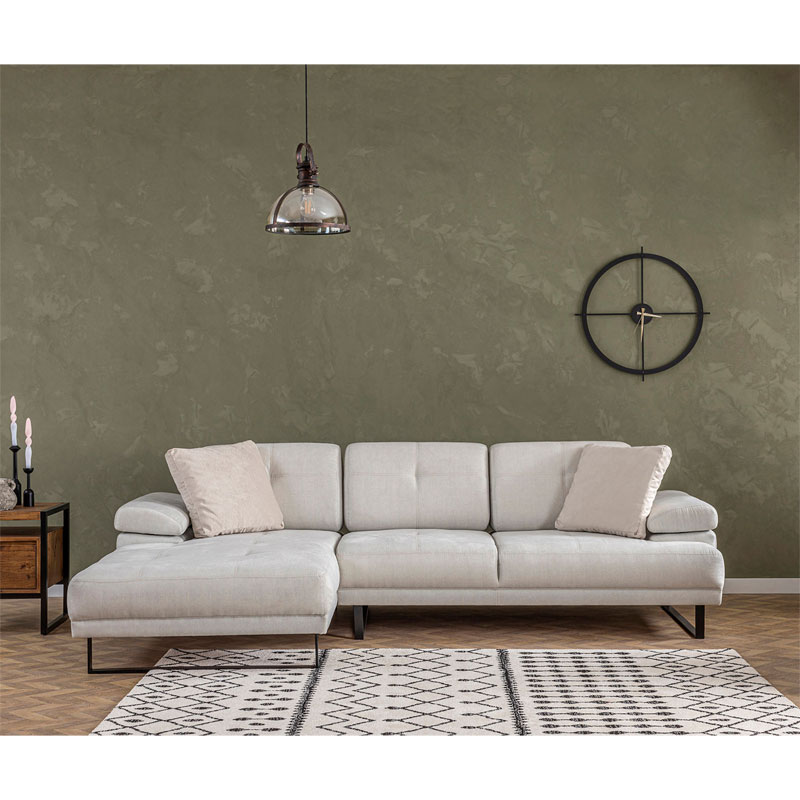 Γωνιακός καναπές με δεξιά γωνία PWF-0586 pakoworld ύφασμα μπεζ 314x174x83εκ