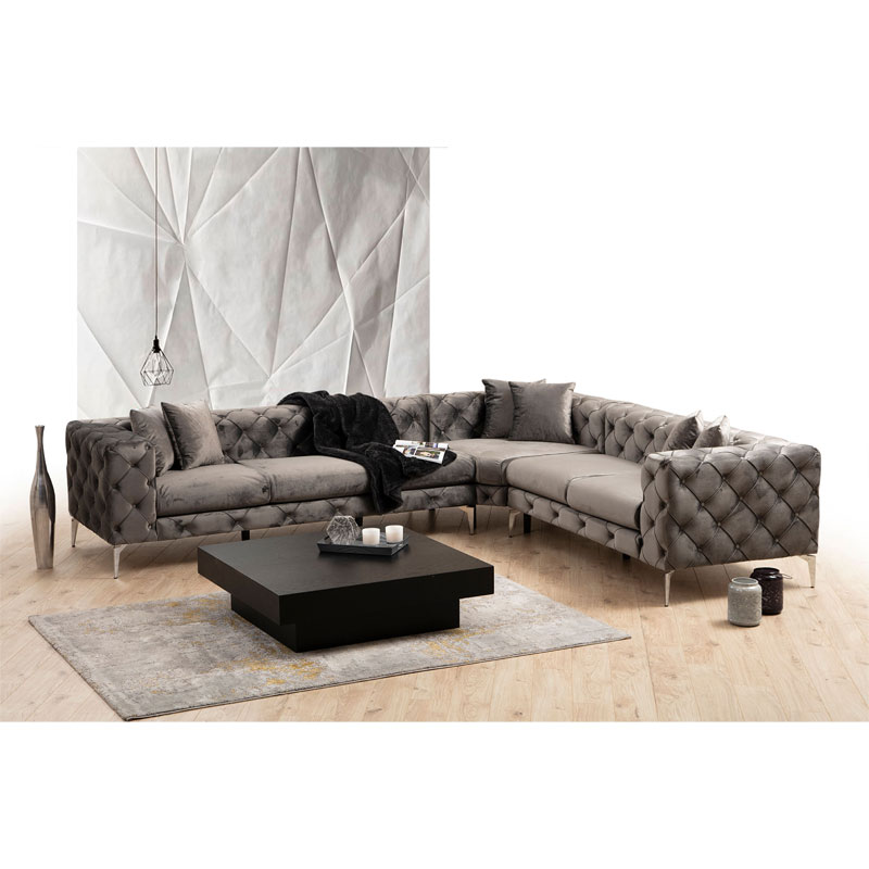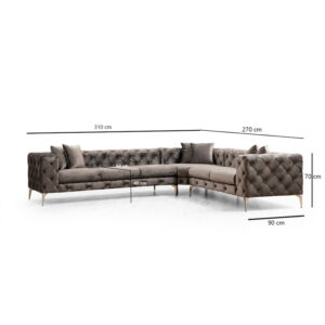 Γωνιακός καναπές με αριστερή γωνία PWF-0579 pakoworld τύπου Chesterfield ύφασμα ανθρακί 310/270×70εκ