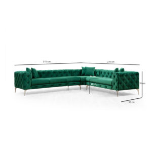 Γωνιακός καναπές με αριστερή γωνία PWF-0579 pakoworld τύπου Chesterfield ύφασμα πράσινο 310/270×70εκ