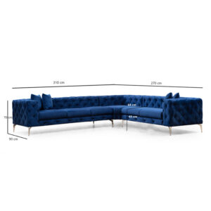 Γωνιακός καναπές με αριστερή γωνία PWF-0579 pakoworld τύπου Chesterfield ύφασμα μπλε 310/270×70εκ