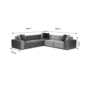 Γωνιακός καναπές με αριστερή γωνία PWF-0623 ύφασμα γκρι-ανθρακί 300/300×76εκ