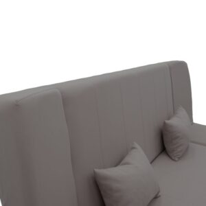 * Επένδυση με ύφασμα microfiber σε μοντέρνο γκρι χρώμα τρομερής ανθεκτικότητας με μεγάλη αντοχή στη τριβή και στη φθορά. Φέρει δύο διακοσμητικά μαξιλαράκια στο ίδιο χρώμα.