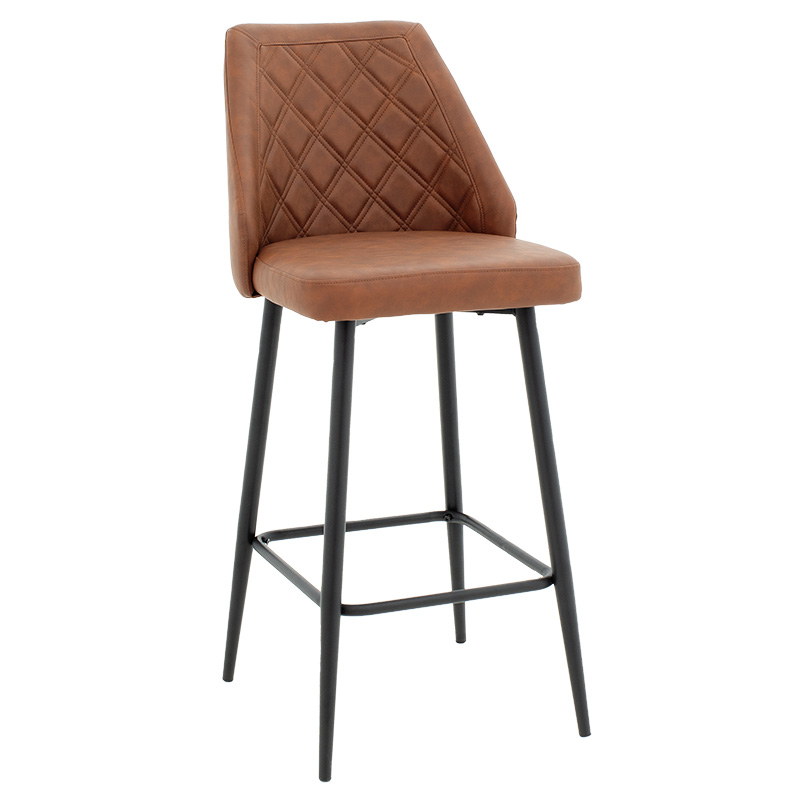 Σκαμπό μπαρ Inflame pakoworld PU καφέ ταμπά-μέταλλο μαύρο