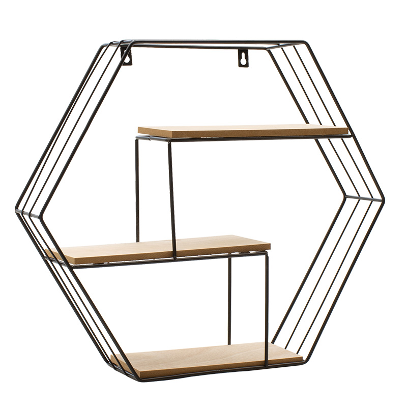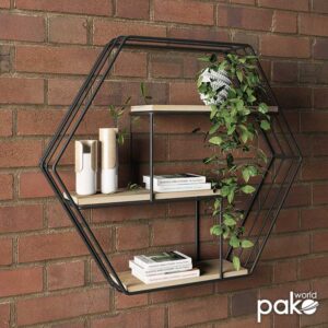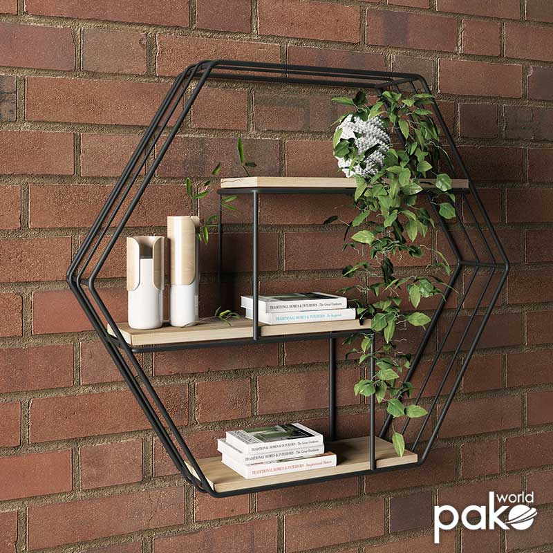 Ραφιέρα τοίχου Azira pakoworld μεταλλική χρώμα μαύρο-φυσικό 50x10x44εκ