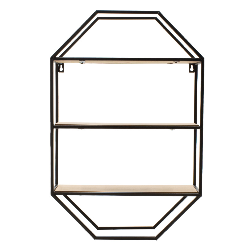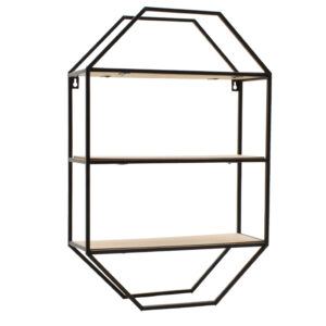 Ραφιέρα τοίχου Azira pakoworld μεταλλική χρώμα μαύρο-φυσικό 40x14x61εκ