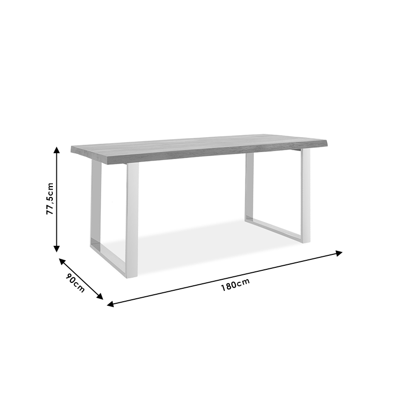 * Η επιφάνεια κατασκευάζεται από μαφίφ φυσικό ξύλο μάνγκο 5εκ υψηλής ποιότητας, με αντοχή στην καταπόνηση και στον χρόνο – σε γκρι antique χρωματισμό. Κάθε κομμάτι αποτελεί και ένα έργο τέχνης, καθώς είναι μοναδικό λόγω της ιδιαίτερης ανομοιομορφίας του κορμού του δέντρου. Μπορεί να φέρει ή να δημιουργήσει ρωγμές στη πορεία του χρόνου (που οφείλονται στην συστολή και διαστολή του μασίφ ξύλου που είναι ζωντανός οργανισμός) και που το καθιστούν ακόμη πιο πρωτότυπο και ιδιαίτερο. Κατά τη διαδικασία παραγωγής πραγματοποιείται επεξεργασία και ομοιομορφία των υπάρχοντών ρωγμών με υλικό κατασκευής από το ίδιο ξύλο. Επομένως, κάθε κομμάτι μπορεί να φέρει μικρές παραλλαγές στην χρωματική τονικότητα και τις διαστάσεις λόγω της φυσικότητας του κορμού του δέντρου. Όλα τα παραπάνω είναι απολύτως φυσικά για μασίφ ξύλο και δεν αποτελούν ελάττωμα του προϊόντος.