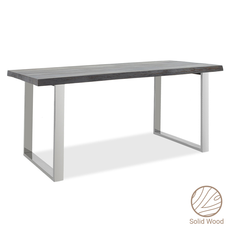 Τραπέζι Falan pakoworld μασίφ ξύλο 5εκ γκρι antique-πόδι inox 180x90x77.5εκ