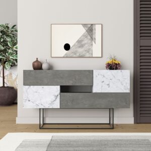 Μπουφές Roberta pakoworld γκρι antique-λευκό μαρμάρου 145x40x82εκ