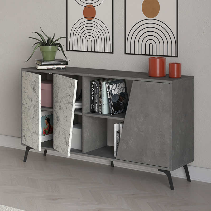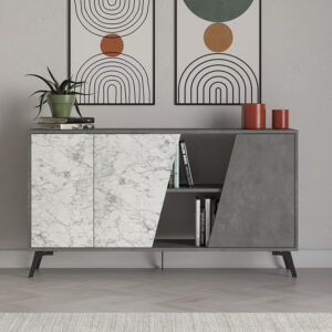 Μπουφές Hana pakoworld γκρι antique-λευκό μαρμάρου 150×35.5×82εκ