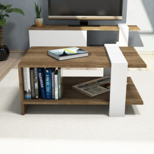 Τραπέζι σαλονιού Cave pakoworld χρώμα καρυδί-λευκό 80x50x35εκ