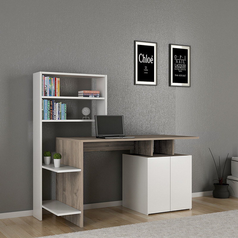 * Περιλαμβάνει γραφείο σε γκρι-μπεζ χρώμα με ενσωματωμένη λευκή βιβλιοθήκη.