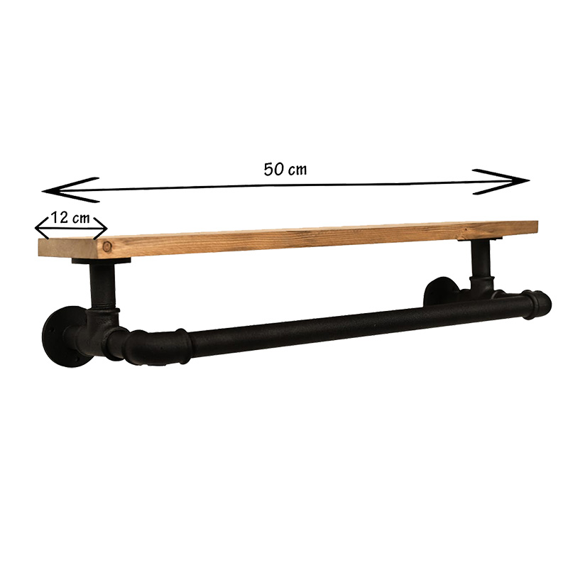 Ραφιέρα τοίχου Beckett pakoworld μαύρο-φυσικό 50x12x18εκ