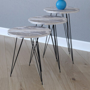 Βοηθητικά τραπέζια σαλονιού Merci pakoworld σετ 3τεμ απομίμηση λευκού γκρι μαρμάρου-μαύρο