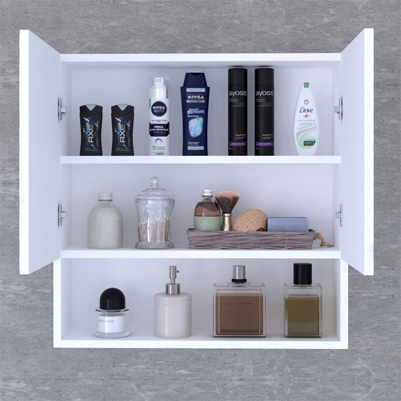 Φέρει δύο ράφια εσωτερικής αποθήκευσης εντος του ντουλαπιού καθώς και ένα ράφι ανοιχτής αποθήκευσης