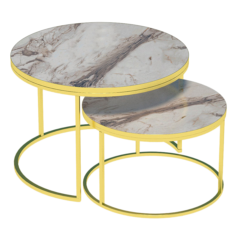 Τραπέζια σαλονιού October pakoworld σετ 2τεμ λευκό γκρι μάρμαρου-χρυσό ματ
