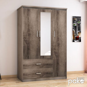 Τρίφυλλη ντουλάπα Olympus με καθρέφτη και δύο συρτάρια σε χρώμα castillo – toro