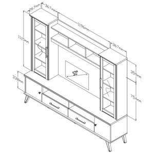 * Φέρει πλαϊνές ραφιέρες με κρύσταλλο, δύο ντουλαπάκια και δύο συρτάρια για την αποθήκευση των ηλεκτρονικών σας συσκευών.