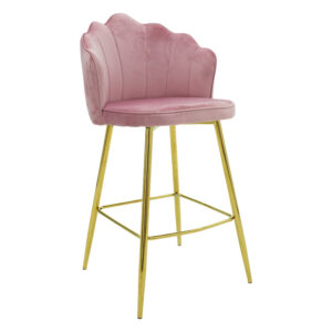 Σκαμπό μπαρ Nataly pakoworld βελούδο κεραμιδί-μέταλλο χρυσό 52x51x100εκ