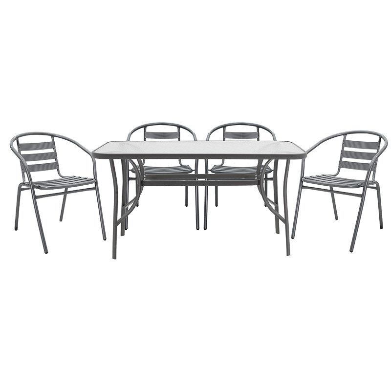 Τραπεζαρία κήπου Ensure-Tade pakoworld σετ 5τεμ μέταλλο-γυαλί ανθρακί 140x80x70εκ.