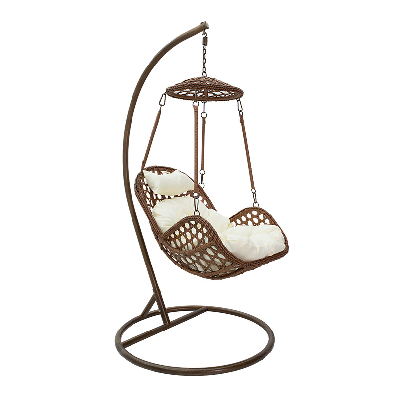 Κούνια κήπου Margie pakoworld κρεμαστή μέταλλο-pp καφέ μαξιλάρι-μπεζ 100x100x195εκ