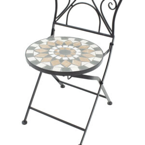 * Οι επιφάνειες του τραπεζιού και των καρεκλών φέρουν μωσαϊκό από φυσικό πλακάκι σε διάφορα χρώματα