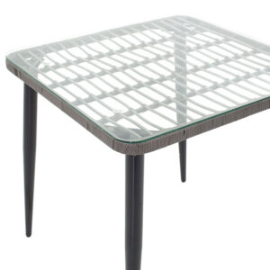Τραπέζι Naoki pakoworld μέταλλο μαύρο-pe γκρι-γυαλί 80x80x78εκ
