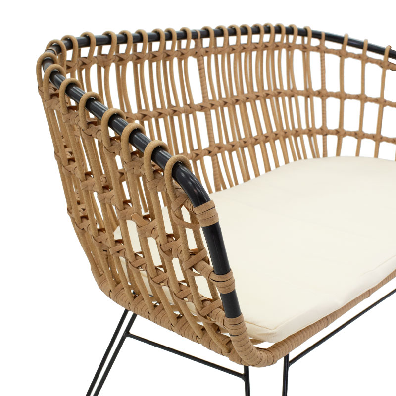 Κυρίως επιφάνεια καναπέ από PE rattan. Το PE rattan είναι ένα είδος οικολογικού συνθετικού rattan, ανακυκλώσιμο και με μεγαλύτερη ανθεκτικότητα σε σχέση με τα άλλα είδη.