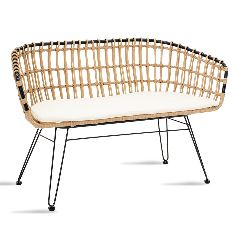 Καναπές 2θέσιος Naoki pakoworld μέταλλο μαύρο-pe φυσικό 120x55x79εκ