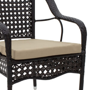 * Έδρα και πλάτη από PE rattan.Το PE rattan είναι ένα είδος οικολογικού συνθετικού rattan, ανακυκλώσιμο και με μεγαλύτερη ανθεκτικότητα σε σχέση με τα άλλα είδη.