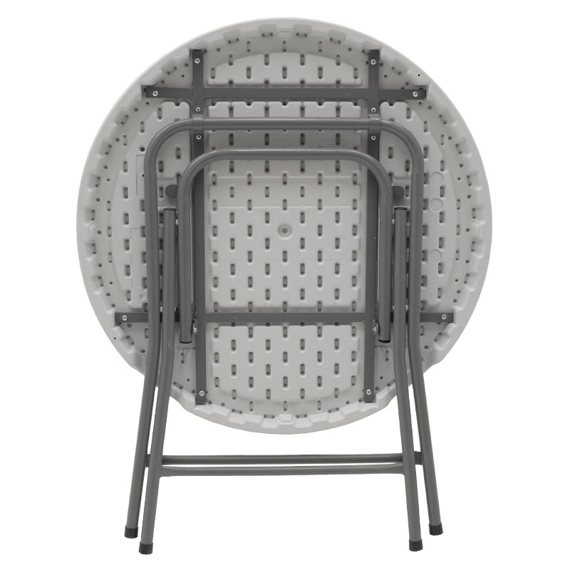 *Μονοκόμματη στρόγγυλη επιφάνεια 5,5 εκ. κατασκευασμένη από πολυαιθυλένιο υψηλής πυκνότητας (HDPE), ένα ανακυκλώσιμο υλικό, ειδικό για εξωτερικούς χώρους με μεγάλη ανθεκτικότητα στην καταπόνηση από τον ήλιο και τη βροχή. Προσφέρεται στο χρώμα του λευκού/γρανίτη.
