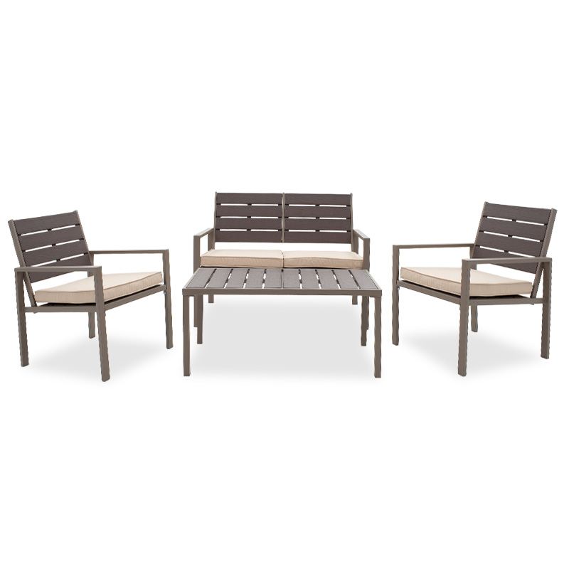 Σαλόνι κήπου Patio pakoworld σετ 4τμχ μέταλλο μόκα-pe καφέ-μαξιλάρια μπεζ