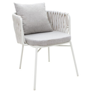 Πολυθρόνα κήπου Zeren pakoworld μέταλλο λευκό-pe rattan ύφασμα γκρι