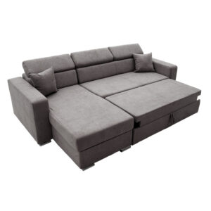 Γωνιακός καναπές-κρεβάτι αναστρέψιμος Lura pakoworld ανθρακί 255x162x75-90εκ