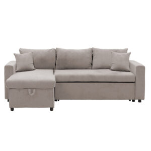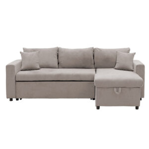 Γωνιακός καναπές-κρεβάτι αναστρέψιμος Lilian pakoworld ύφασμα μπεζ 225x148x81εκ