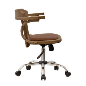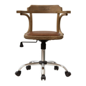 Καρέκλα γραφείου εργασίας Kahil pakoworld μασίφ ξύλο καρυδί-pu καφέ