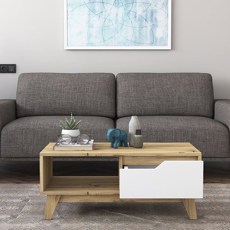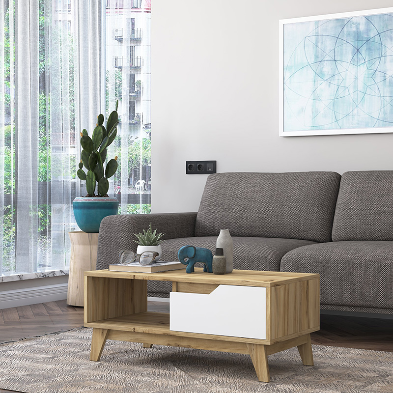 Τραπέζι σαλονιού Judas pakoworld καρυδί-λευκό 90x45x38,5εκ