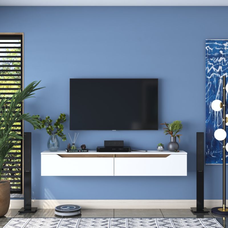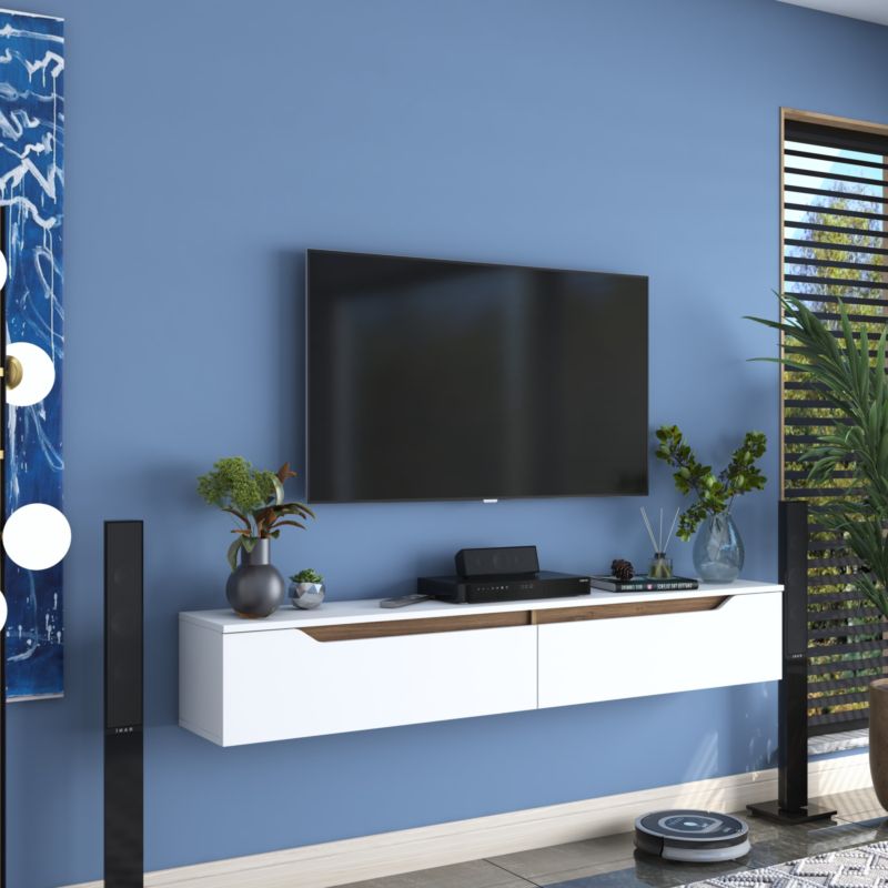 Έπιπλο τηλεόρασης επιτοίχιο Sabina pakoworld λευκό-καρυδί 180x30x28.5εκ