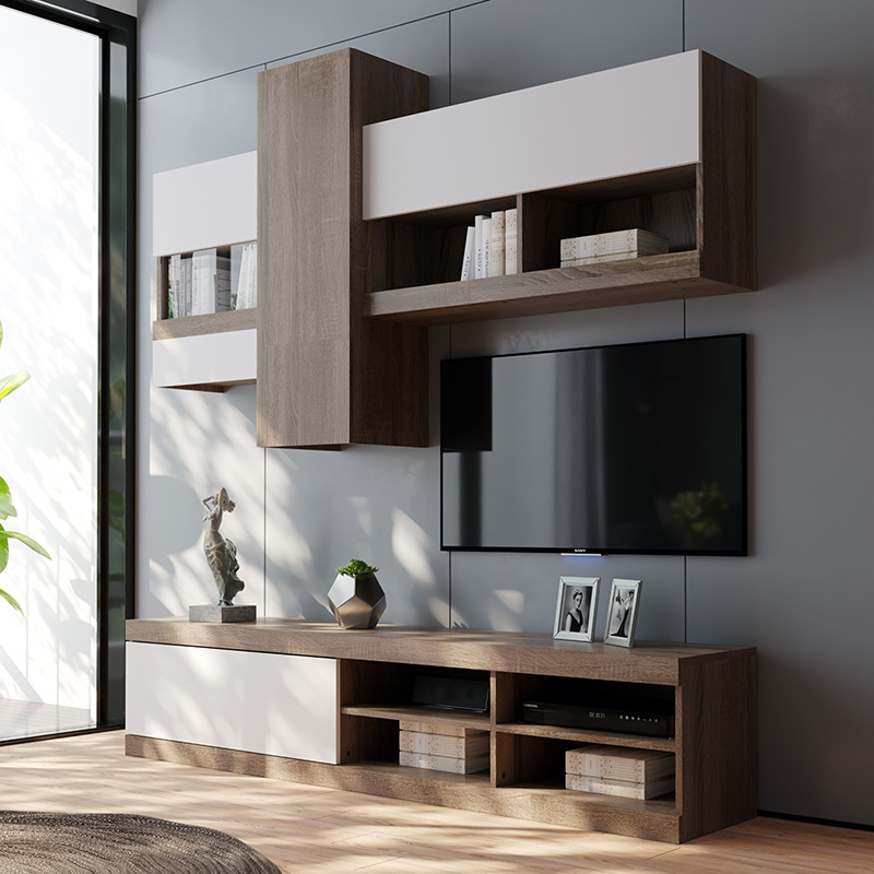 Σύνθετο σαλονιού Janne pakoworld καρυδί-λευκό 185x37x180εκ