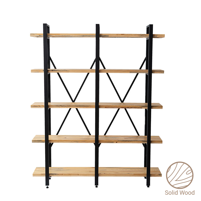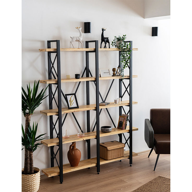 Βιβλιοθήκη Trout pakoworld μασίφ ξύλο πεύκου φυσικό-μαύρο 149x27x185εκ