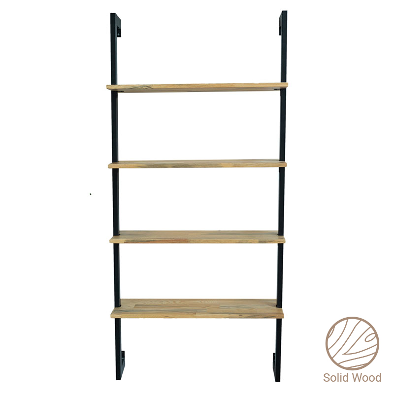 Ραφιέρα τοίχου Wilfred pakoworld μασιφ ξύλο πεύκου φυσικό-μαύρο 69x21x150εκ