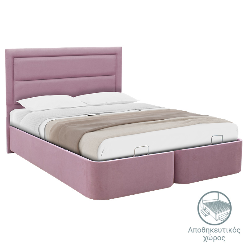 Κρεβάτι διπλό Luzia pakoworld ύφασμα ροζ 160×200εκ