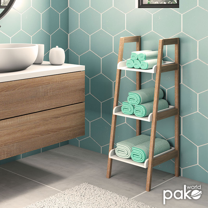 Ραφιέρα επιδαπέδια 3όροφη Natural pakoworld ξύλινη χρώμα φυσικό-λευκό 30x37x88.5εκ