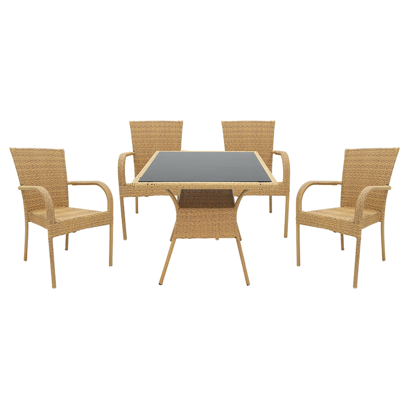 Τραπεζαρία Laura σετ 5τεμ pakoworld μέταλλο-pe rattan φυσικό