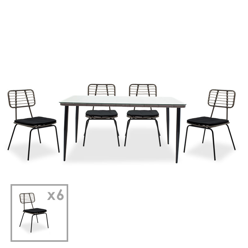 Τραπεζαρία κήπου Naoki σετ 7τεμ pakoworld μέταλλο μαύρο pe γκρι.